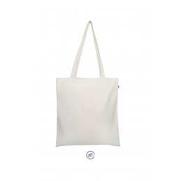 Sac en toile 100 % coton issu de l'agriculture biologique fabriqué en France. 2 anses, porté main ou épaule. Détail tricolore sur le côté.