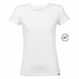 100 % coton peigné, bord côte 100 % coton. Bande de propreté au col, coupé cousu et détail tricolore en bas de corps.