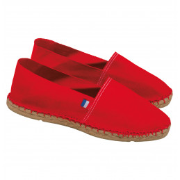 Toile 100 % coton. Semelle en caoutchouc vulcanisé et jute. Fabrication française : montage, couture et coupe.